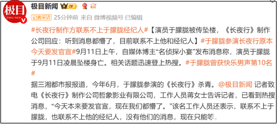 随着舆论发酵,越来越多人意识到未经确认之前,就盲目传播于朦胧坠楼身亡相关消息,本质是对于他本人的消费,不管最终结果如何,还会伤害到于朦胧的家人。